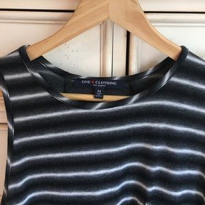 Perfect condition dark gray and white striped tank dress with front pocket! Worn only a handful of times, no visible wear. Super comfy and cute, perfect for someone who loves being comfortable. Willing to negotiate, make me an offer!