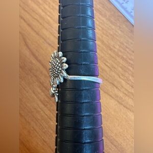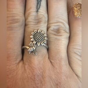 Sooooo cute! Sterling silver bypass adjustable ring with a sunflower and bee. Currently sitting at a 7.5 but can be made bigger or smaller. Adorable little ring!