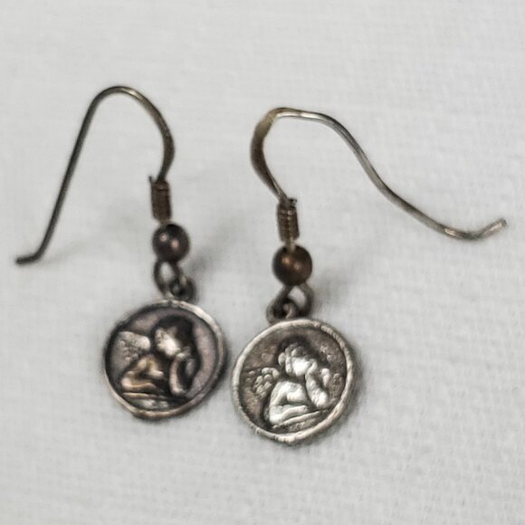 Adorable Tiny Dainty Dangle Little Angel Cherubim Silver 925 Earrings