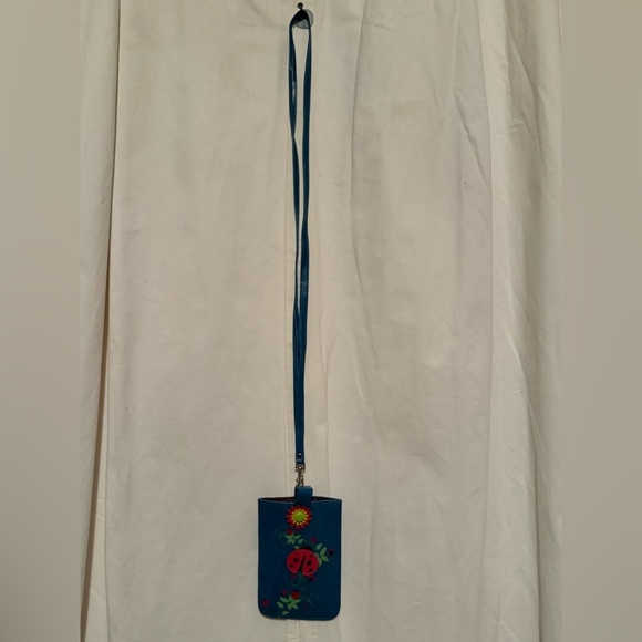 Adorable Turquoise Floral Ladybug Phone And Eyeglass Case W/ Strap 6.25 x 4.25