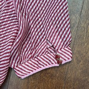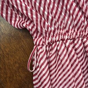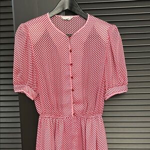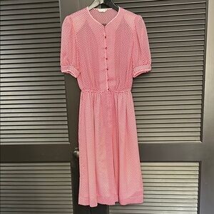 Adorable Vintage Coquette Striped Red and Pink Dress with Puff Sleeves, Size