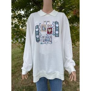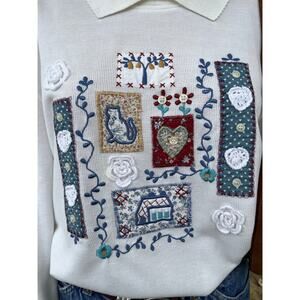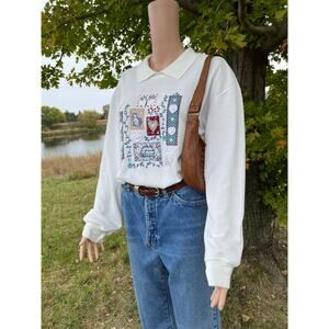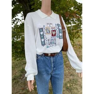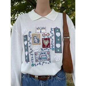 Don't miss out on the chance to own a genuine vintage treasure. Grab it now and add a touch of retro style to your wardrobe! This embroidered sweater is not just a garment; it's a statement piece that brings a sense of nostalgia and charm to your look. 2 small stains shown in pictures.