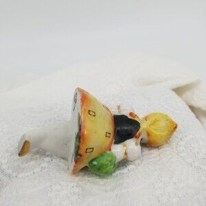 These two are meant to be together, and according to Feng Shui having representations of pairs bring harmony into the home in terms of relationships and family. If you love vintage cottagecore / farmhouse / decor and whimsical little discoveries of accent pieces in your home, these two will add a touch of nostalgia without taking up too much space. The girl sits on a shelf easily (just add a little earthquake putty to keep her secure). She is adorable, and she adds a little pop of color anywhere she graces a home. The standing boy is also so cute, and I especially like his little pig companion at his feet. He too adds a pop of color that complements her in perfect way. No visible chips or issues on either piece.