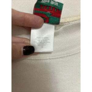 The shirt is available in size 1X, and has side slits. The shirt is perfect for Christmas and holiday themed events, with a 90s vibe. Get into the winter season with this adorable vintage T-shirt.