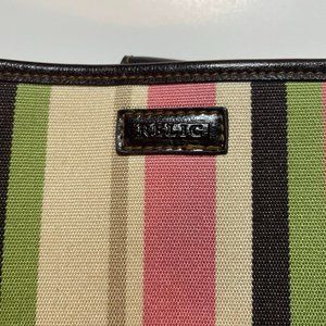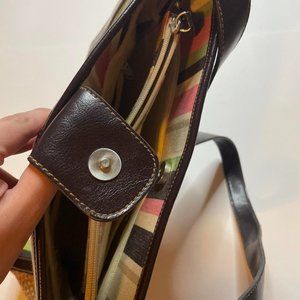 Adorable vintage RELIC pastel colored striped and woven purse with dark brown leather detail