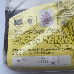 Adorable Vintage Round Tablecloth Embroidered Strawberries 72” Diameter