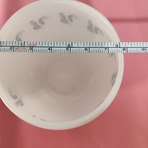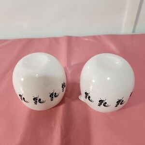 Charming vintage, MCM white glass set with 'Sugar' and 'Cream' labels. Features a rooster design.