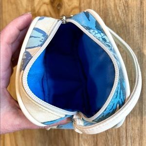 Super cute little purse in good vintage condition! I cleaned this one up A LOT. It still has a little discoloration, but not too noticeable at all. The piping and strap are in good condition aside from a little wear near the zipper. Love this one!!! Clean inside.