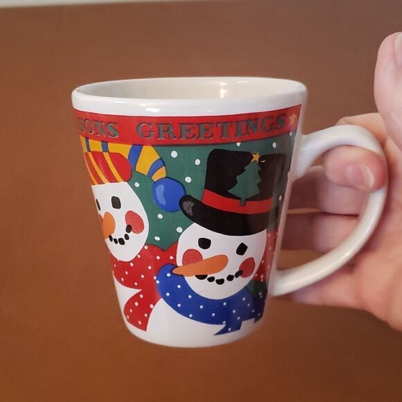 Adorable Vintage Ceramic Season's Greetings Snowman Coffee Hot Cocoa Mug