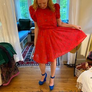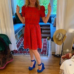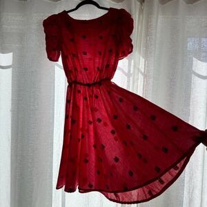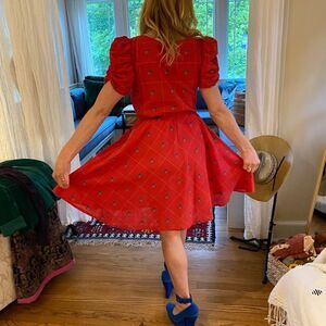 Cutest Vintage Red Dress with little plaid squares and white check print