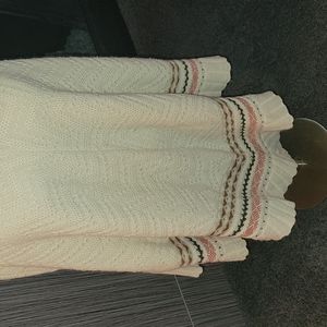 cute poncho with western bottom trim. has sleeves for added comfort. size small medium. no flaws