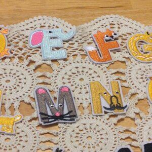 These are SO cute! Alphabet iron on / sew on patches with cute animals imbedded in letters. I love these! Complete alphabet included.