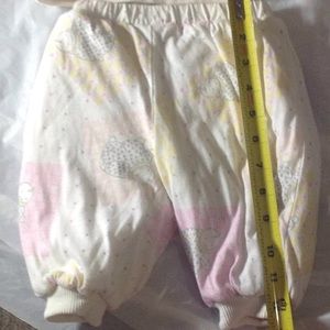 Adorable baby girl reversible outfit. Pants are approximately 12 1/2 inches long from waist to cuff at the bottom of leg. Underarm is approx 6 inches to end of wrist cuff. You can wear this many ways. Thick and warm for the winter.