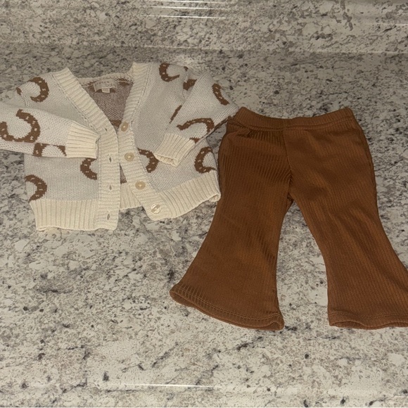 Adorable baby outfits set- horse shoe Cardigan and Bell bottom pants- 12 m