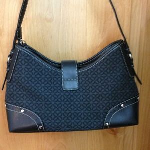 This is a gently used handbag. It has never been used and is a perfect size. It has a 24" long strap and is about 6" tall and 12" long.