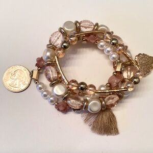 Adorable boho, hippie chic stacked bracelet … beads, pearls, tassels… yum!