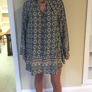 Patterned flowy dress with small v cut out in the front!!