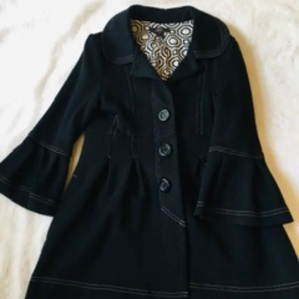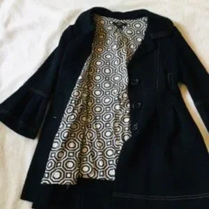 This coat is super cute! With big buttons, flared sleeves and funky lining.