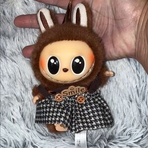Adorable plush bunny doll with a gray hood and red shirt. Comes with a small green succulent in a terracotta pot.