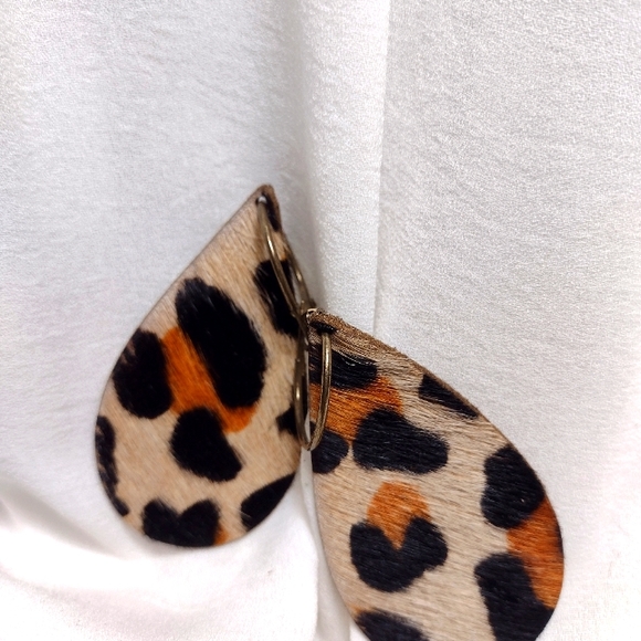 Earring measures 3inches from the earring hole to the tip, you can add different hoops, never worn, leather