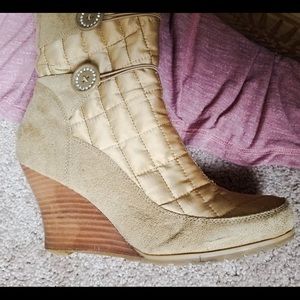 These boots are styling AND warm!! Add a chic look to your winter wardrobe. There is a slight bit of wear so please look at 3rd and 4th photo.