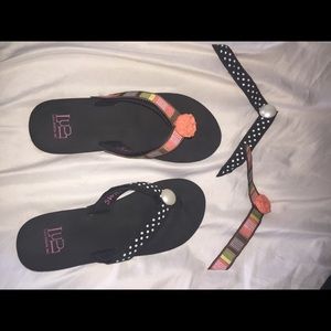 These have been worn maybe twice! They are super cute and comfy and come with a different Velcro strap design as seen in the third picture. I'm pretty sure you can purchase more strap designs online as well for limitless looks 😊 feel free to ask any questions!