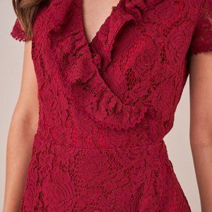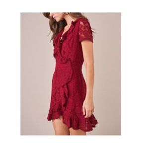 Adorable lace wrap dress ruffle in burgundy
