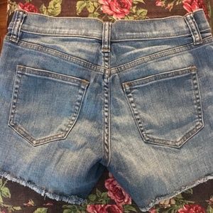 Adorable lightly frayed hem denim shorts.