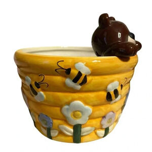 Cute beehive with bees surrounding the little hair. See measurements in pics. Som crazing on the inside last pic