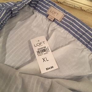 Adorable new pinstripe blue and white above knee skirt with slight A line flare with easy pull on elastic waist. This is a large sized XL.