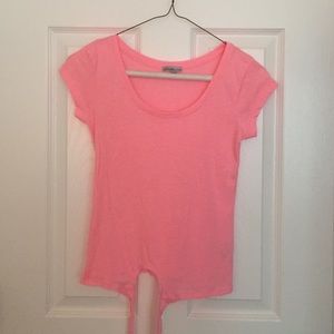 Adorable pink top from Charlotte Russe. Scoop neck and ties at the bottom. In great condition. Will ship next day!