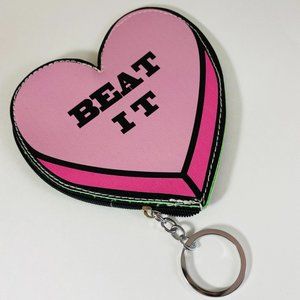 Adorable pleather faux leather "BEAT IT" heart shaped change purse key chain