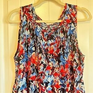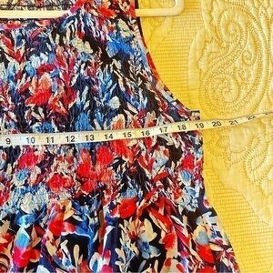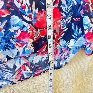 Adorable red, white, blue floral maxi dress. Comfy, casual and perfect for a BBQ. Stretchy and flattering. Size XL
