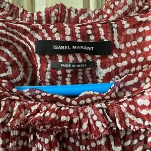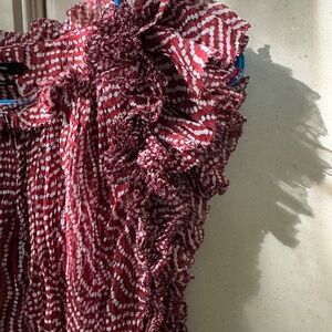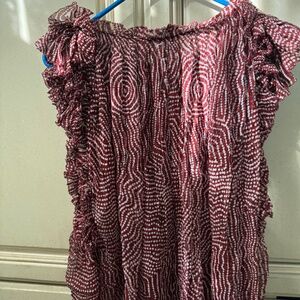Adorable ruffled maroon and white print top by Isabel Marant. Excellent condition size small. Original price was $98 asking $50