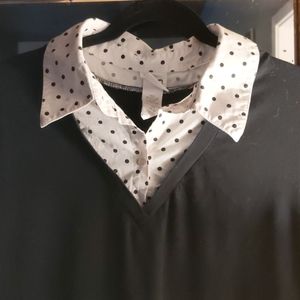 Looks like you are wearing a polka dot shirt under a black top, but it's one top. Super cute. Great for the office. Fashion bug size 18/20. GUC