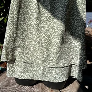 This sleeveless blouse is super cute!! It ties over one shoulder. It’s green and cream colored, size M, and is loose and very lightweight.