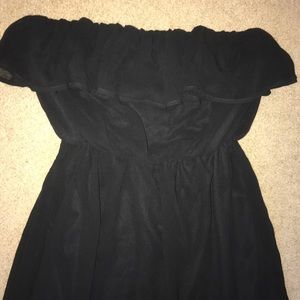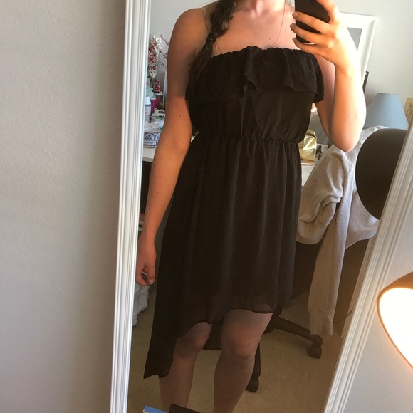 Black high low dress, has some flouncey ruffle at bust (great for smaller chested people to emphasize!!), very flowy and beautiful dress. Never been worn!