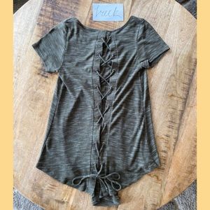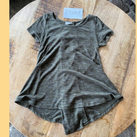 I LOVE this piece! It’s super comfy and the color makes blue eyes sparkle! This top tends to hug your skin a tad, so it shows off your figure! Also, runs a tad small!