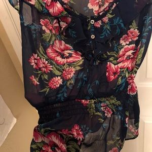 ‼️SOLD‼️short sleeve top with synched middle. slightly see through top pictured never worn