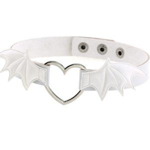 Adorable vegan faux leather Bat wing choker adjustable Festival Rave white Wings