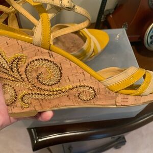These Bandolino wedges are in near mint condition. I have worn them a handful of times. They measure about 3” high, but they are very comfortable. They deserve to be loved!