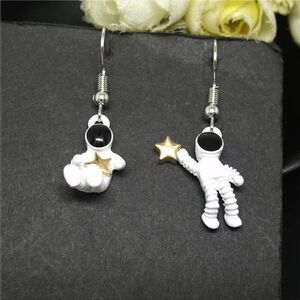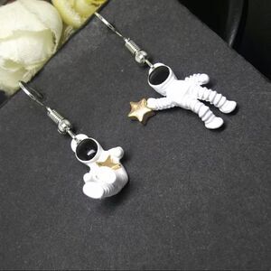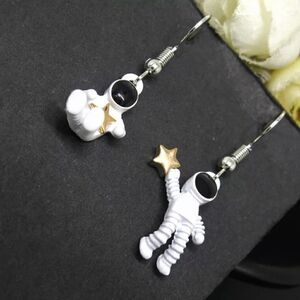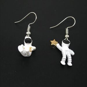 Super duper cute little astronaut/spacemen in their little white spacesuits floating in space and catching some stars. These little pierced earrings with fishhooks are sure to start some fun conversations.