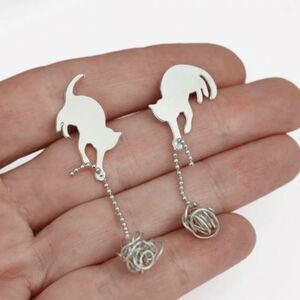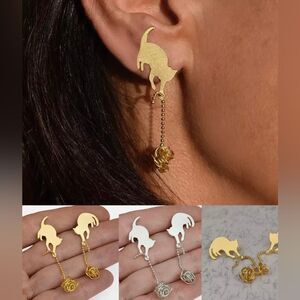 Adorable Cat Kitty Playing Earrings Silver Gold