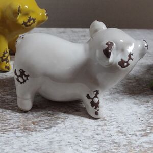 Perfect little pigs. Ceramic fashioned to look like worn cast iron. Very cute.