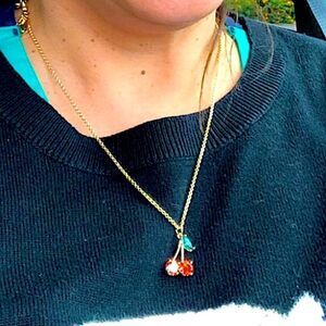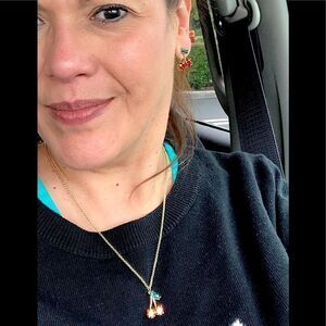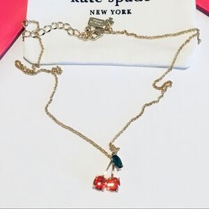 Adorable Cherry Kate Spade necklace, it will make you feel glamorous, made for pierced ears, can be wear with a silk blouse or a t-shirt and jeans, it is perfect for day or evening. Comes with jewelry Kate Spade jewelry pouch