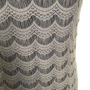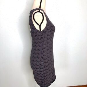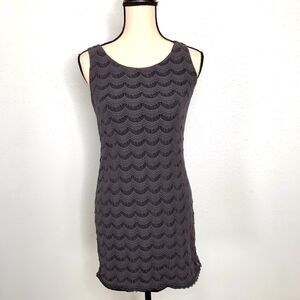 Adorable Free People sleeveless sheath style dress size medium. Gray crochet style overlay with intricate detail and black lining underneath. Is a little shorter in length close to a mini. Wear as is or throw on some cute boots and cropped jean or moto style jacket for a night out. This dress is in excellent used condition with no known flaws. Comes from a smoke free home.
