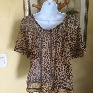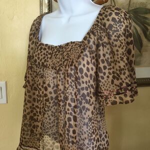 Adorable leopard print top! Perfect condition! Sheer, so you will need a cami or wear it over your swimsuit!