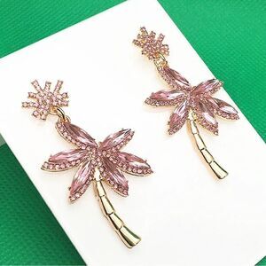 Beautiful and adorable pink and gold pierced palm dangle earrings perfect for the summer vacation while sipping frozen drinks in the sand or by the pool.