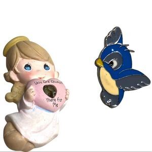 Adorable Precious Moments and Flying Blue Bird Pin Bundle