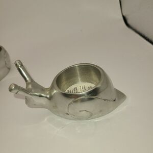 Brand new and adorable! Silver snail votive holders. Heavy so perfect to be used on patio...or just on shelf in your home.